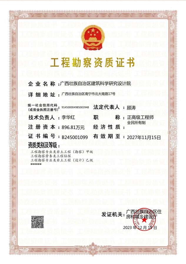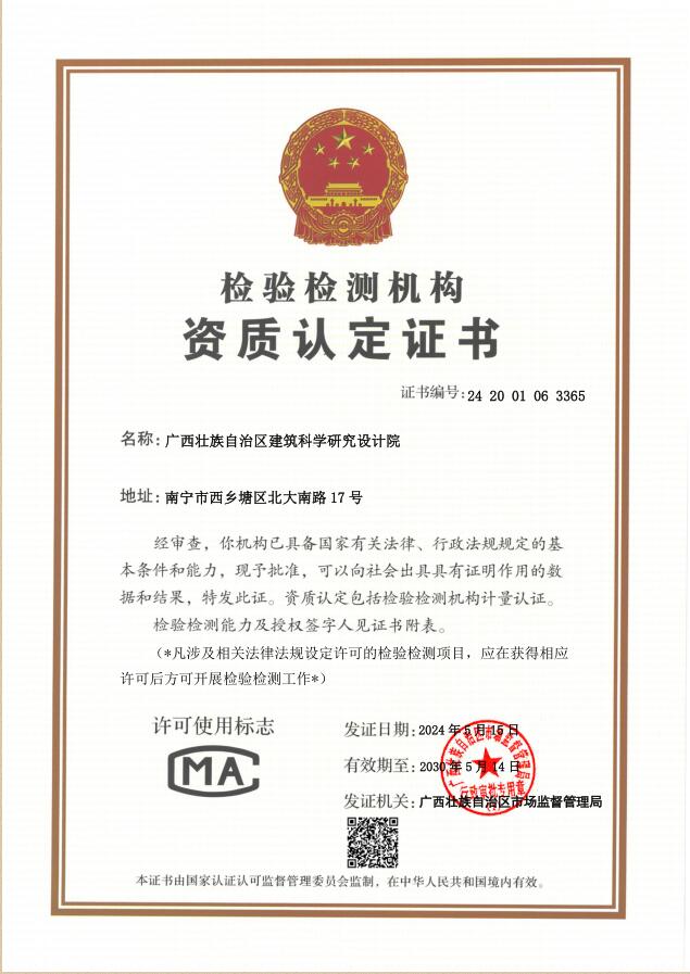 建設(shè)工程質(zhì)量檢測機(jī)構(gòu)資質(zhì)證書