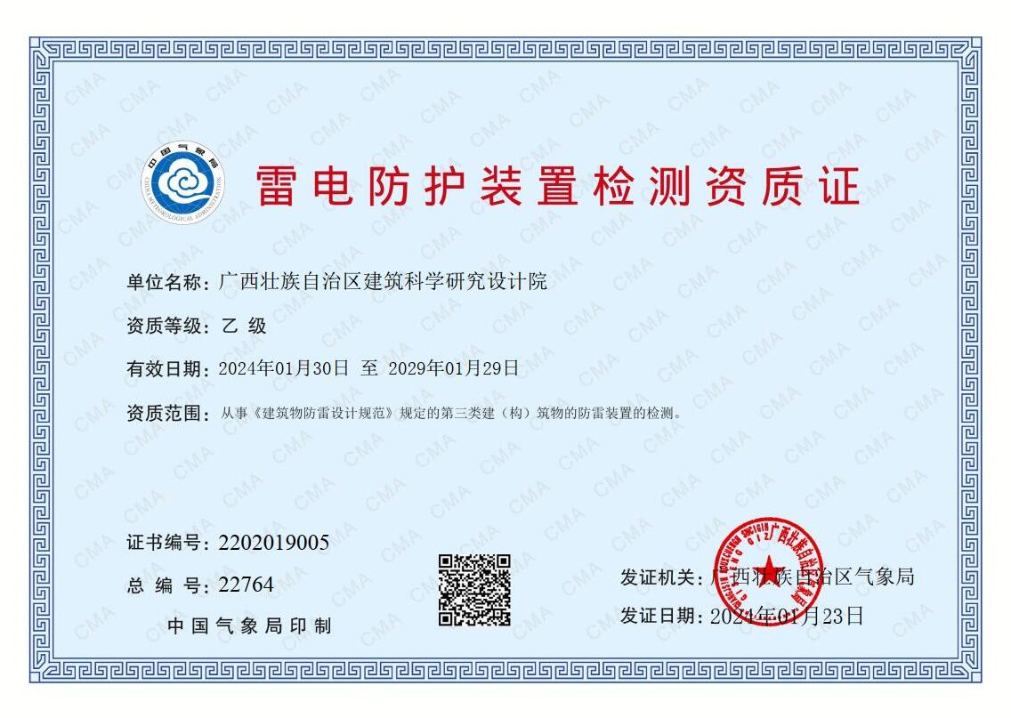 雷電防護(hù)裝置檢測資質(zhì)證 乙級
