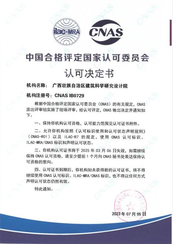 中國合格評定國家認(rèn)可委員會(huì)認(rèn)可決定書CNAS IB0729