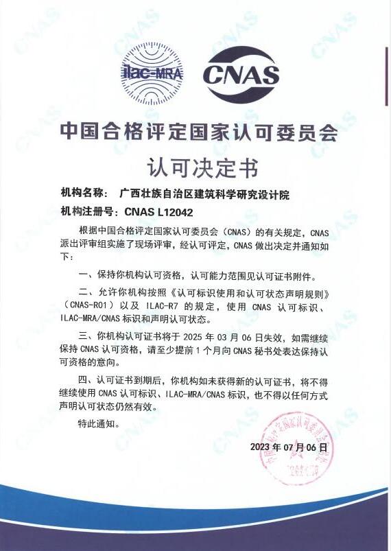 中國合格評定國家認(rèn)可委員會(huì)認(rèn)可決定書CNAS L12042