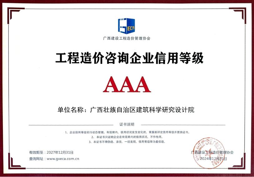 工程造價(jià)咨詢企業(yè)信用等級AAA