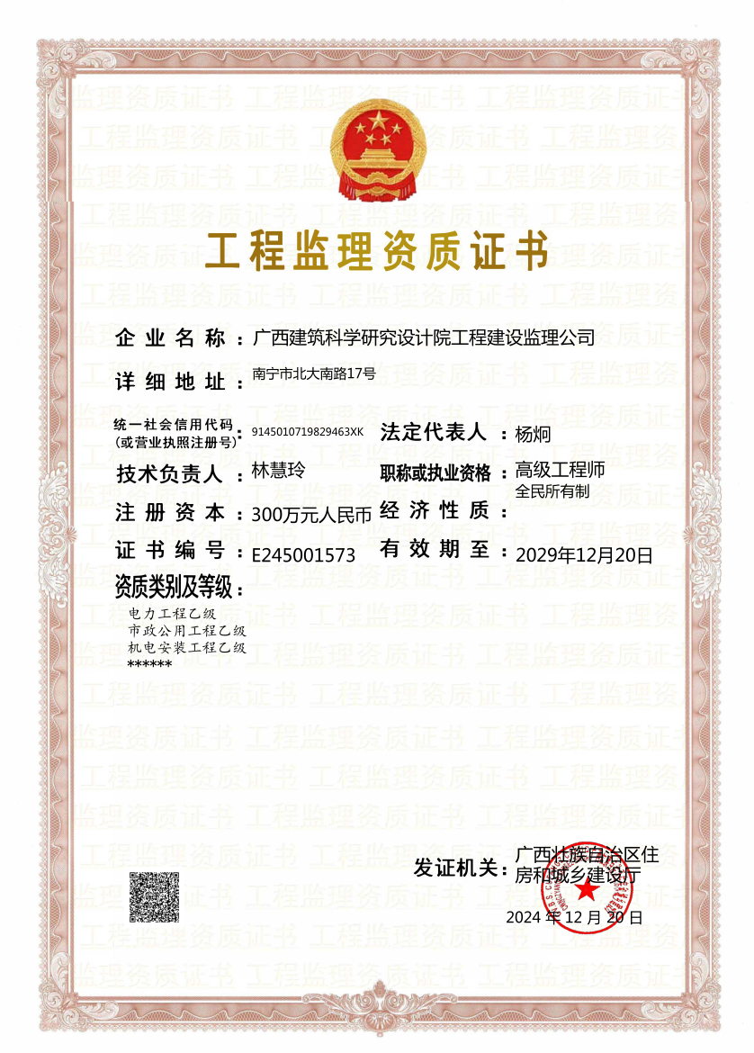 市政公用工程監(jiān)理 乙級、電力工程 乙級、機(jī)電安裝工程監(jiān)理 乙級