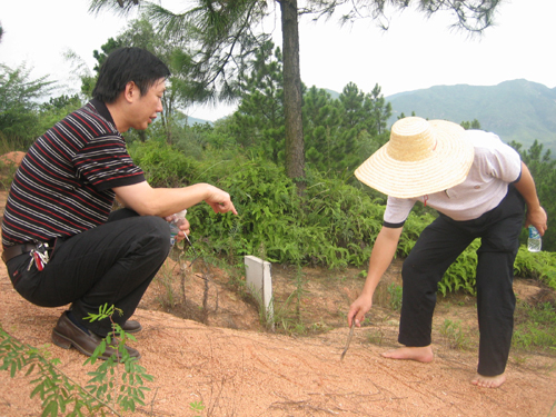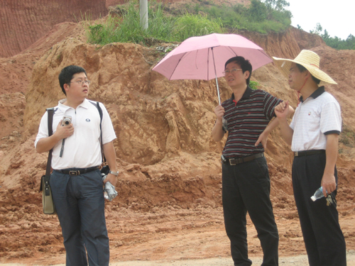 2007年8月院新任書記黃晨考察陸川規(guī)劃現(xiàn)場