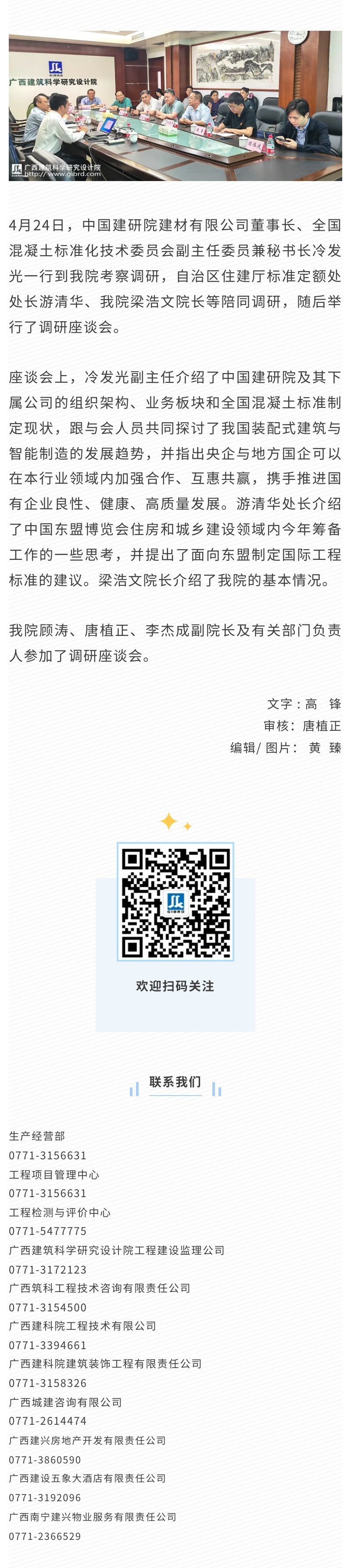 全國混凝土標(biāo)準(zhǔn)化技術(shù)委員會副主任委員冷發(fā)光一行到我院調(diào)研