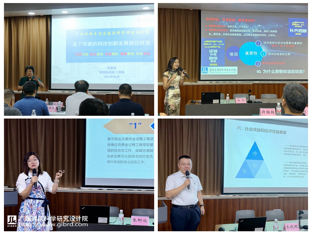 在論壇上,院顧問總工朱惠英作了“廣西建科院在綠色節(jié)能領域的科研創(chuàng)新成果與未來發(fā)展方向”的主題報告,綠色建筑研究設計所所長楊帆作了“城市更新與新城鎮(zhèn)化”主題分享,工程項目管理中心副主任張柳欣作了“全過程咨詢管理的酸甜苦辣”主題分享,院技術公司副總經理齊曉鵬作了“廣西建科院‘建筑醫(yī)院‘構想”主題分享。大家圍繞論壇主題,從不同角度和層面,分享了行業(yè)創(chuàng)新發(fā)展的經驗,共同探索行業(yè)前沿與瞻望發(fā)展新趨勢,為企業(yè)科技創(chuàng)新發(fā)展獻計獻策。
