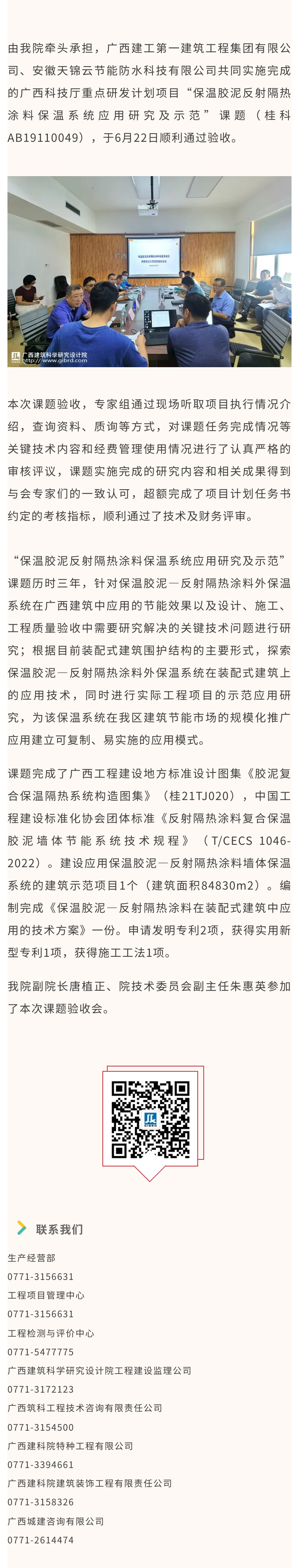 我院牽頭承擔(dān)的“保溫膠泥反射隔熱涂料保溫系統(tǒng)應(yīng)用研究及示范”課題通過(guò)驗(yàn)收