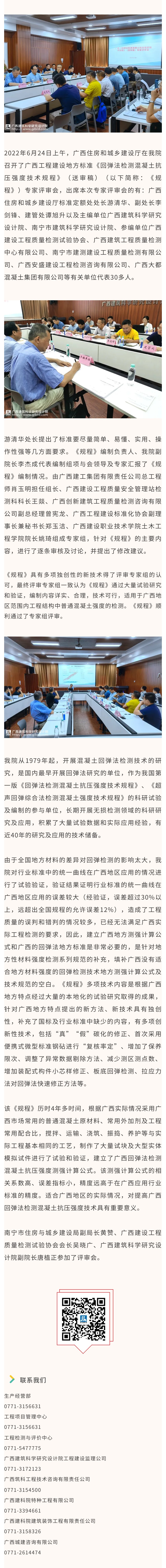 我院主編的廣西工程建設(shè)地方標(biāo)準(zhǔn)《回彈法檢測混凝土抗壓強度技術(shù)規(guī)程》(送審稿)通過專家組評審