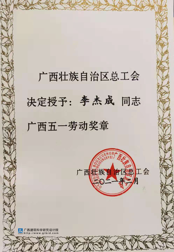 李杰成副院長榮獲的廣西五一勞動獎?wù)?