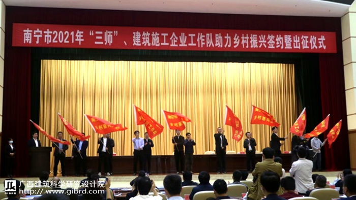 儀式上,我院代表陳建光代表廣西建科院與武鳴區(qū)住建局就“三師”下鄉(xiāng)進行簽約。楊振東代表廣西建科院接受南寧市領(lǐng)導(dǎo)授旗。在首批“三師”下鄉(xiāng)行動中,我院共派出12名設(shè)計師,分成2個工作隊,服務(wù)于武鳴區(qū)的府城鎮(zhèn)、城廂鎮(zhèn)、寧武鎮(zhèn)、甘圩鎮(zhèn)、靈馬鎮(zhèn) 、鑼圩鎮(zhèn)六個鎮(zhèn)。