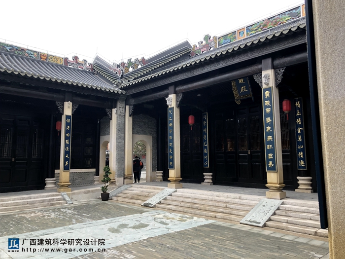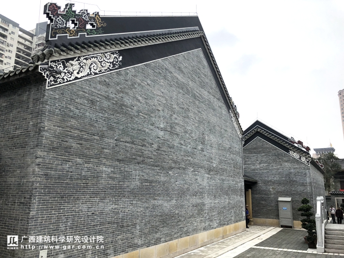 南寧城隍廟重建項(xiàng)目是由我院牽頭的EPC項(xiàng)目,在設(shè)計(jì)之初,由于歷史遺存資料嚴(yán)重缺失,我院設(shè)計(jì)人員大量查閱歷史文獻(xiàn)資料如廣西通志、南寧府志、邕寧縣志和舊報(bào)紙、舊照片,并奔赴福建泉州、廣州、揭陽(yáng)和南寧周邊考察蘇家祖廟、廣州城隍廟、揭陽(yáng)城隍廟、南寧孔廟、五通廟等相關(guān)文物和遺存,充分挖掘和嚴(yán)密論證南寧城隍廟的歷史、規(guī)制等設(shè)計(jì)依據(jù)。在經(jīng)過(guò)8次正式評(píng)審和專家論證,5次材料詢價(jià)定樣,召開(kāi)百余次現(xiàn)場(chǎng)會(huì),我院在確保城隍廟大至規(guī)制布局、小至構(gòu)造圖案的情況下,按照歷史、傳統(tǒng)、宗教、歷史及實(shí)際使用的各類要求,摸索出一整套切實(shí)可行的傳統(tǒng)木結(jié)構(gòu)宗教禮制建筑設(shè)計(jì)、建造模式。