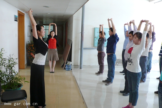 本月19日,我院邀請專業(yè)瑜伽老師教授辦公室瑜伽。辦公室瑜伽是一套針對缺少運動的辦公室上班族減壓與健身而設(shè)計的瑜伽動作。通過一系列簡單,科學(xué)而又非常合理的瑜伽動作,來幫助緩解工作壓力,治療和預(yù)防常見的“辦公室綜合癥”。辦公室瑜伽動作簡單,效果明顯,在辦公室的方寸之地就可以輕松練習(xí)。達到保護視力。消除頸椎,肩,背疲勞,促進消化及減肥美體與放松身心的目的。本次瑜伽教學(xué)深受廣大員工的歡迎,林宗定副院長和院工會副主席楊萍也到場與員工們一起練習(xí)。希望本套辦公室瑜伽能在我院推廣開來,大家都能擁有一個健康的身體,才能更好地進行工作。
