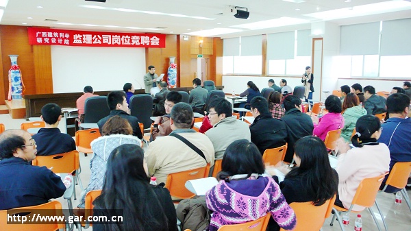 為加強管理,調(diào)動員工工作積極性,發(fā)掘和培養(yǎng)企業(yè)內(nèi)部優(yōu)秀管理人才,進(jìn)而建立有效的激勵與競爭機制,院監(jiān)理公司于2011年3月26日舉辦崗位競聘會。會議由監(jiān)理公司陳群毓總經(jīng)理主持,院辦公室樊振北副主任、院企劃咨詢中心龐耀國主任、監(jiān)理公司副經(jīng)理等6名資深專業(yè)專家組成評委小組,監(jiān)理公司領(lǐng)導(dǎo)、各監(jiān)理部總監(jiān)以及員工等50余人參加了此次競聘大會。參加競聘的同志分別從自己對擬聘崗位的認(rèn)識、近年來工作業(yè)績、競聘該職位的主要優(yōu)勢和上任后的工作設(shè)想等幾個方面進(jìn)行了精彩的競聘演講和現(xiàn)場答辯。競聘演講結(jié)束后,專業(yè)評審小組評委對每一位競聘者現(xiàn)場打分,并進(jìn)行民主測評。