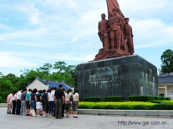 在南湖公園烈士紀(jì)念碑向烈士敬獻(xiàn)花圈。副調(diào)研員、教授級(jí)高工陳旭能(第2排右)、院總會(huì)計(jì)師張桂珍(第2排左)