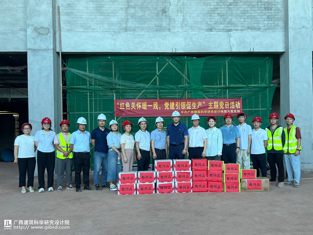 為慶祝中國共產(chǎn)黨成立104周年,深化黨建與業(yè)務(wù)高度融合,發(fā)揮基層黨支部戰(zhàn)斗堡壘作用,6月25日,我院第六黨支部全體黨員走進(jìn)由院下屬工程技術(shù)公司承建的“廣西防城港市白沙灣國際醫(yī)學(xué)園區(qū)”加固改造工程項(xiàng)目一線,開展“紅色關(guān)懷暖一線、黨建引領(lǐng)促生產(chǎn)”主題黨日活動。副院長許維超以分管院領(lǐng)導(dǎo)和支部普通黨員雙重身份參加此次活動。活動特邀了院總工程師李華紅、黨委辦公室主任黎慶炎參加。